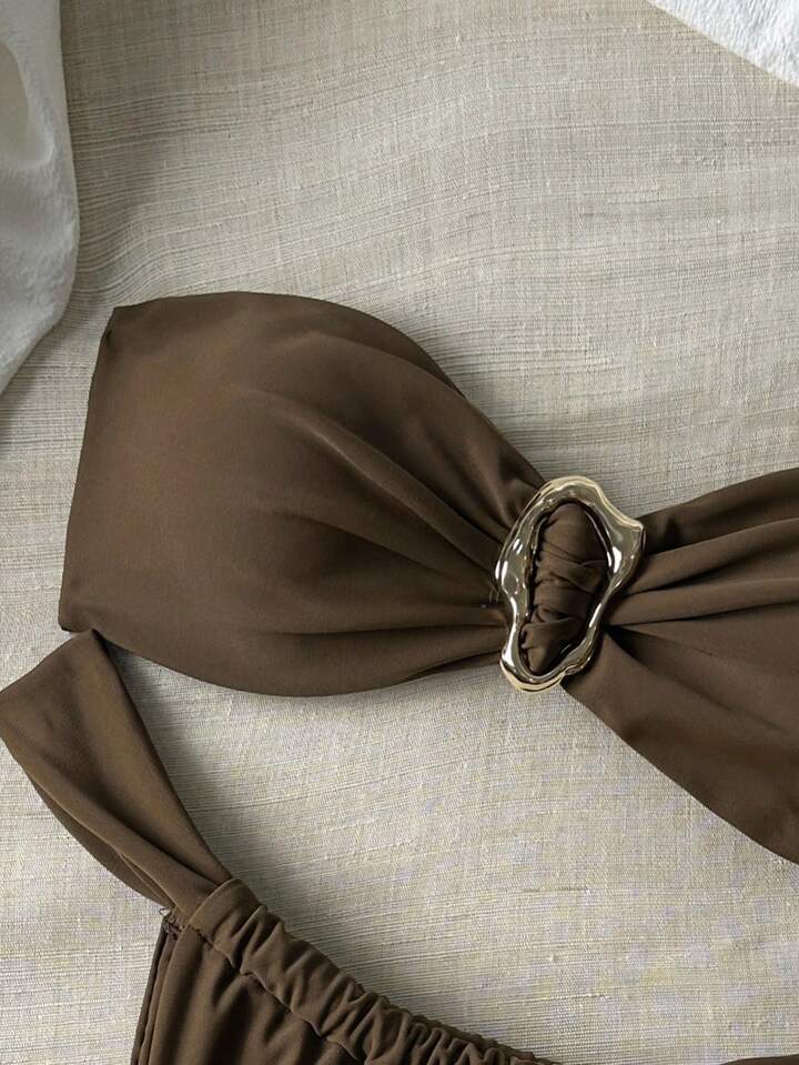 Bikini 2 piezas de lycra matte premium, con forro interno y detalle metálico. Parte superior corte bandó soft para atar. Parte inferior tanga corte tiro medio efecto lifting de piernas y glúteos.